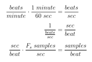 To create a tempo-sync’d echo as a programmer, it is necessary to convert the song tempo to a number of delay samples. This involves several steps to convert the time units of Beats Per Minute (BPM) to time units of Samples Per Quarter Note or Samples Per Eighth note, etc.